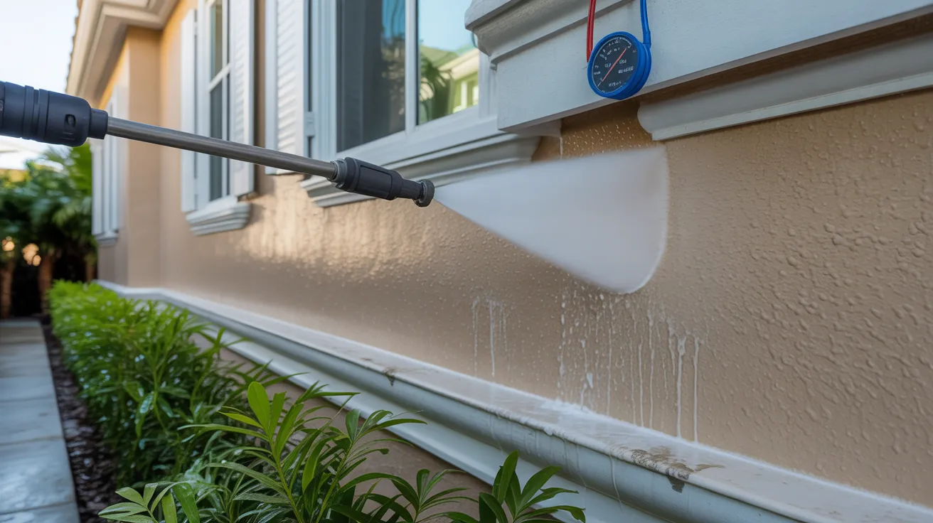 - Use soft washing for siding, stucco, and roofing; save pressure washing for concrete and pavers with adjusted PSI to stop damage.
